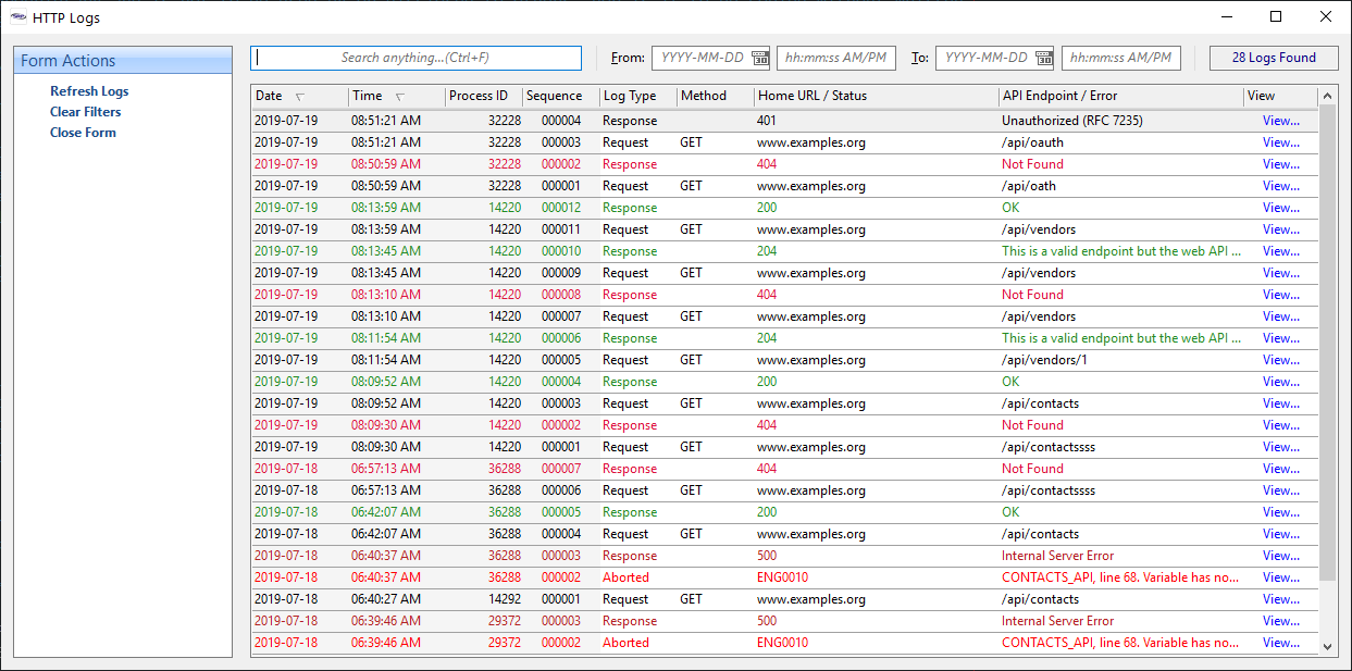 In our last release we added a feature so that individual endpoints can be excluded from logging. Still, the number of log files that get generated can still be daunting and difficult to sift through when specific issues need to be investigated. Never fear...the new HTTP Logs utility is here! Just launch the NDW_HTTP_LOGS form, confirm the log directory, and wonder why we never created this sooner!